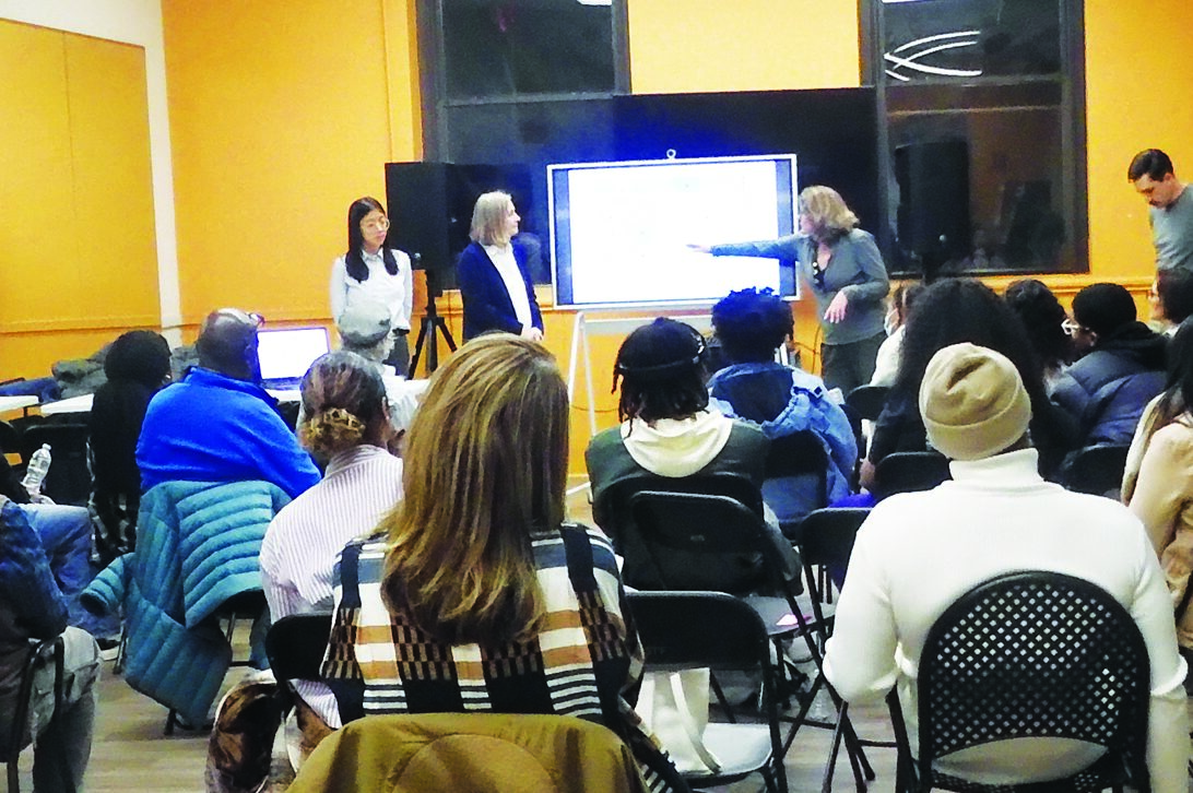 Shown to an audience of HSTF students and neighbors, all three concepts were based on three stationary areas – a playground for little kids, a basketball court for young adults and teenagers, and a performance stage next to the corner sculpture “Reach.”